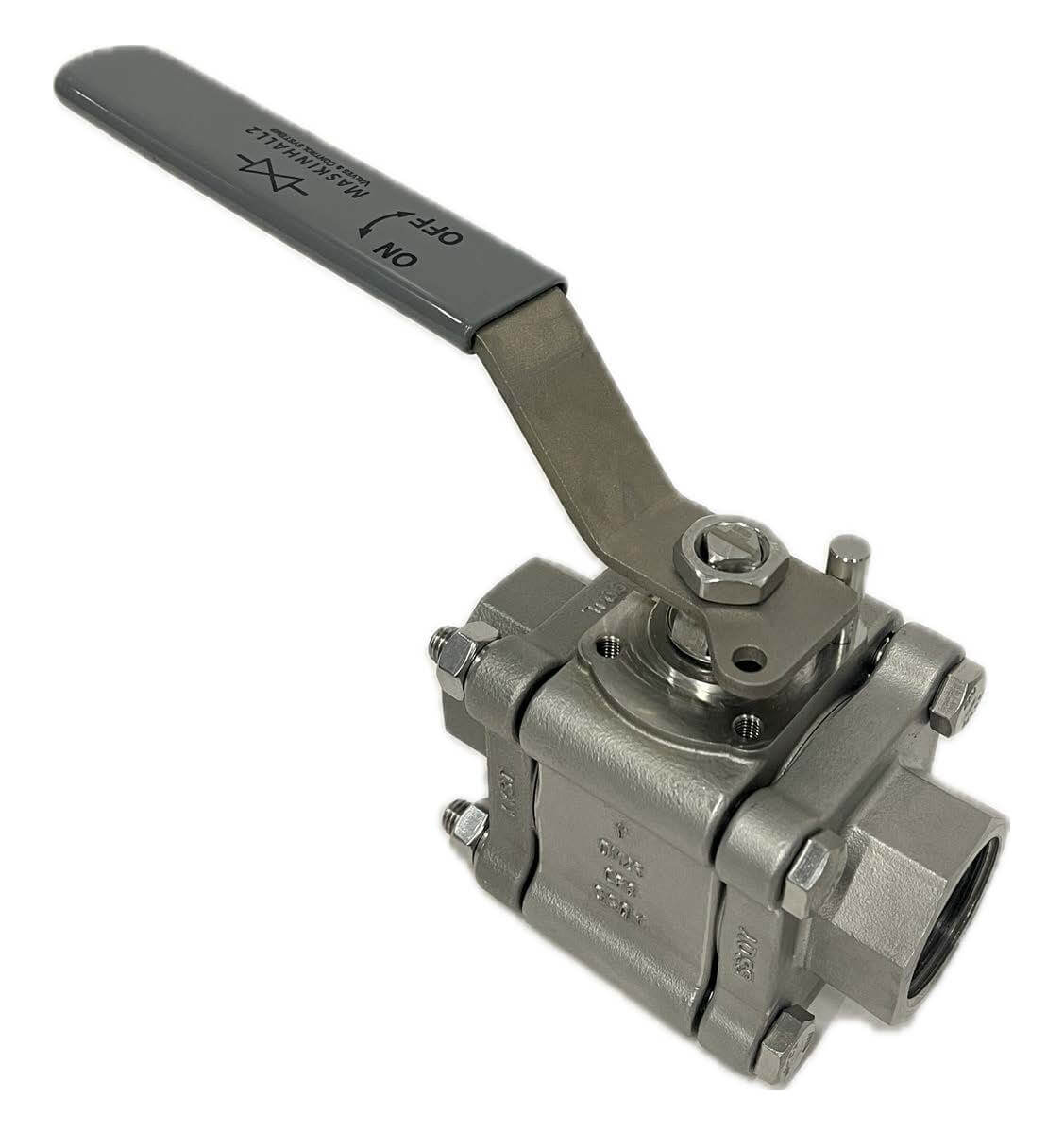 Three pieces, full bore, stainless steel body ball valve and P287 (polyimide-filled PFTE) seat. BSPT female threaded.